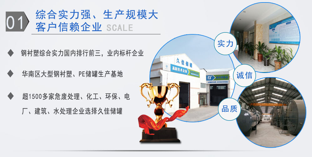 公司有鋼襯塑PE/PO、PE全塑、碳鋼、不銹鋼四大系列100多個品種,專注于常壓儲存容器生產(chǎn),其產(chǎn)品包括鋼襯塑儲罐、管口一體成型PE儲罐、碳鋼儲罐、不銹鋼儲罐、反應釜、攪拌罐、離子交換柱、鋼襯PE/PO儲罐、塑料儲罐、鹽酸儲罐、硫酸儲罐等等。更大限度滿足廣大客戶的各種需求,同時可以根據(jù)客戶的需要加工定制各種防腐設(shè)備。